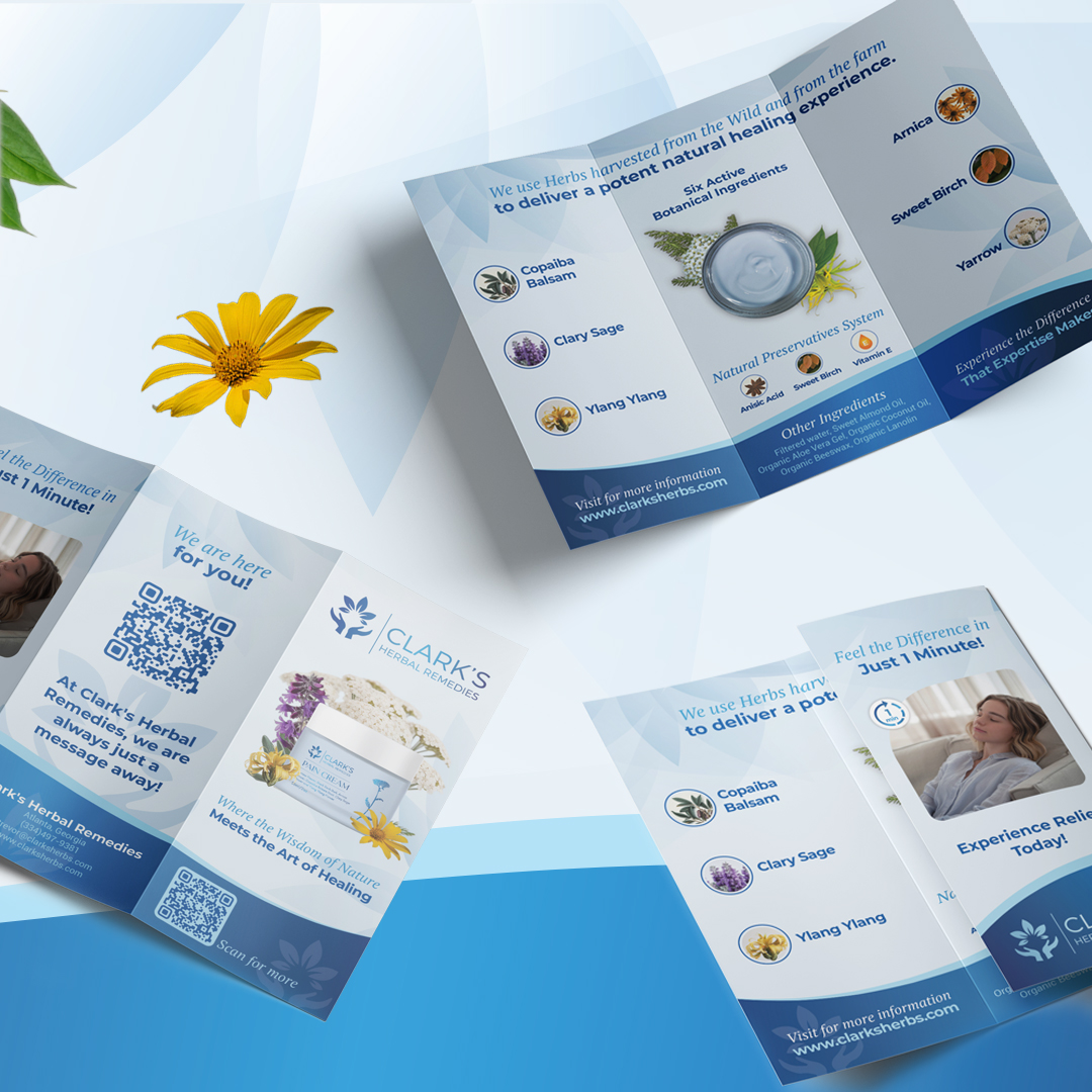 Branding Materials: Extended the design language across brochures, incorporating imagery of natural herbs and soft gradients for a cohesive look.