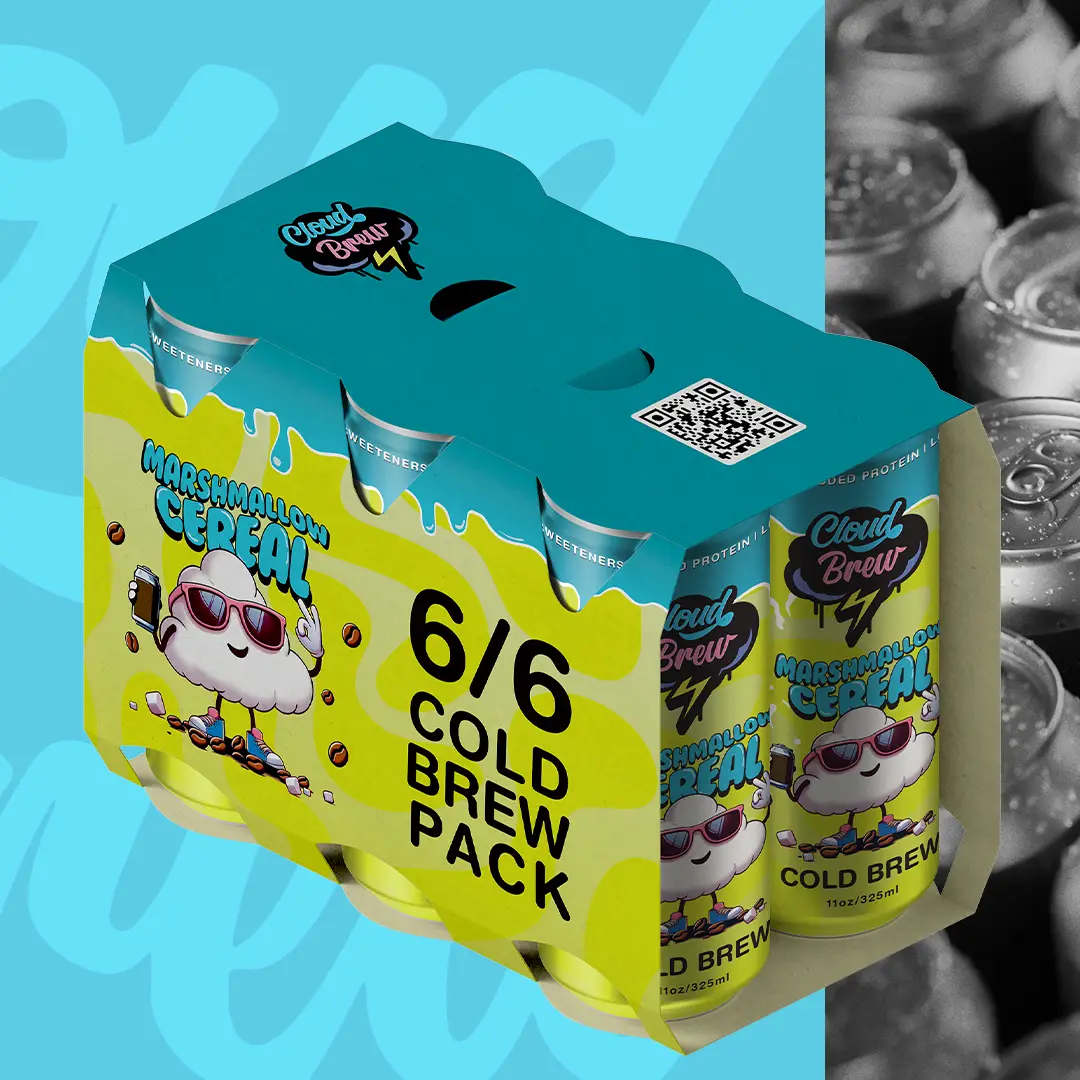 The key focus was to create a dynamic identity for Cloud Brew’s flagship flavor, Marshmallow Cereal, along with three additional flavors. By designing an engaging visual style from scratch, the packaging sets the tone for a playful and modern brand image.