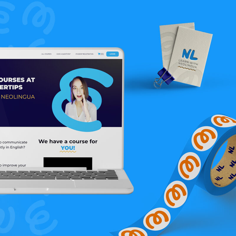 We collaborated with Neolingua to craft a comprehensive brand identity that aligns with its mission to make online language learning fun, accessible, and engaging. The project encompassed logo design, a full branding system, promotional materials, apparel, social media identity, and the complete design of their website.